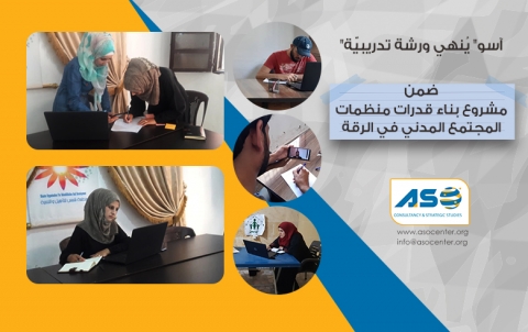 الفعاليات Read more 89 منظمة تندد بتكرار قطع تركيا للمياه عن مئات الآلاف من السكان في شمال شرق سوريا 2020-08-24 Read more Read more منصّة مؤسّسات المجتمع المدنيّ في شمال وشرقي سوريا تنهي جلسة حواريّة حول واقع القطّاع الصحيّ 2020-08-20 Read more Read more كل عام وأنتم بخير 2020-07-30 Read more Read more منصّة مؤسسات المجتمع المدني في شمال وشرقي سوريا تنهي جلسة حواريّة عن الواقع الاقتصاديّ في شمال وشرق سوريا 2020-07-28 Read more Read more مركز آسو ينهي الجلسة التدريبيّة الأولى الخاصّة بـ "الخطّة الاستراتيجيّة للمنظّمات" 2020-07-27 Read more Read more مركز "آسو" ينهي جلسته التدريبيّة الثالثة ضمن مشروع التطوير المؤسّساتي لمنظّمات المجتمع المدني في الرقّة 2020-07-17 Read more Read more "آسو" يُنهي ورشة تدريبيّة ضمن مشروع بناء قدرات منظمات المجتمع المدني في الرقة 2020-07-12 Read more Read more بيان تأسيسي منصّة مؤسّسات المجتمع المدنيّ في شمال وشرقي سوريا 2020-07-05 Read more Read more ضمن أنشطة المرحلة الأولى من مشروع بناء قدرات منظمات المجتمع المدني في الرقة 2020-07-02 Read more Read more بيان إلى الرأي العام دعماً لثقافة الحوار ونبذاً لخطاب الكراهية 2020-06-11 Read more Read more توضيح من مركز آسو بخصوص (عدم التوافق) مع مخرجات اجتماعات رابطة الشبكات السوريّة 2020-06-09 Read more Read more منظّمات فاعلة في شمال وشمال شرق سوريا توجه رسالة إلى مؤتمر بروكسل 2020-06-06 Read more Pages<< < … 5 6 7 … > >>